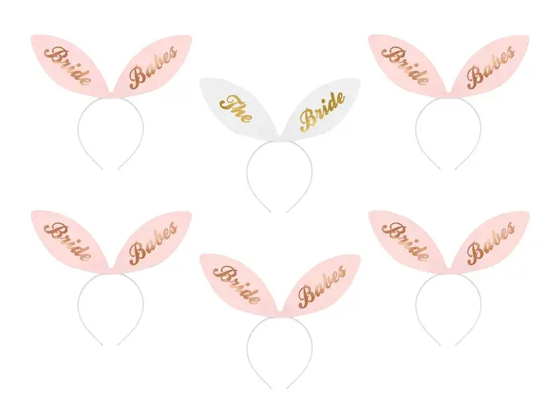Met deze vrolijke Bride Squad diademen maak je van elk vrijgezellenfeest een feestje om nooit te vergeten. De set bestaat uit zes hoofdbandjes met speelse konijnenoren – vijf in roze met de tekst “Bride Babes” en één in wit met “The Bride”. Perfect voor een dagje uit, fotoshoot of avond vol plezier met de hele bridal crew.
