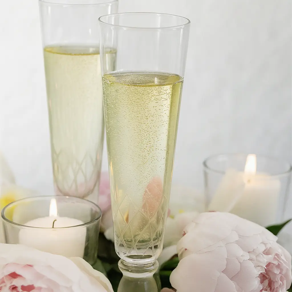 Til jullie toost naar een hoger niveau met deze prachtige set champagneglazen. De hoge, slanke vorm geeft niet alleen een luxe uitstraling, maar zorgt er ook voor dat de bubbels langer bruisend blijven. Ideaal voor een bruiloft, jubileum, verlovingsfeest of een romantisch diner voor twee.