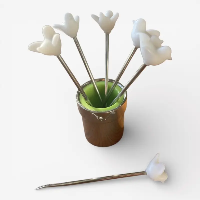 Deze cocktailprikkers met witte duifjes zijn een subtiel en liefdevol detail voor een feestelijke tafel. Perfect voor bruiloften, jubilea of een romantisch diner waarbij zelfs de kleine details bijdragen aan de sfeer.