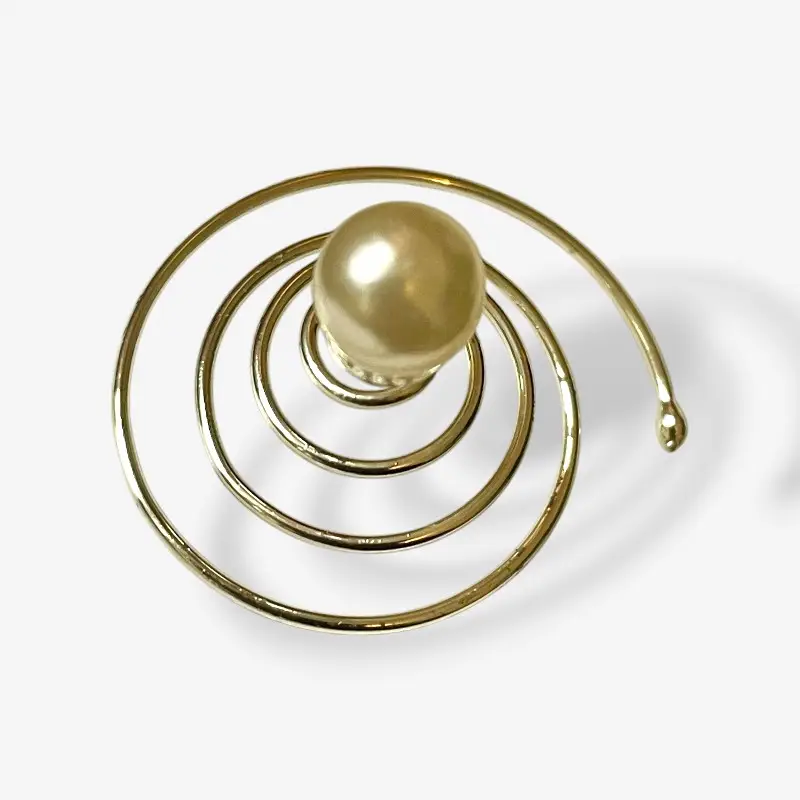 Een klassieke parel-curlie in ivoorkleur die elegantie en eenvoud combineert. De subtiele glans van de parel past perfect bij bruids- en feestkapsels en laat zich moeiteloos combineren met andere haaraccessoires. Dankzij de zilverkleurige spiraal blijft de curlie stevig in het haar zitten, zonder extra speldjes of clips.