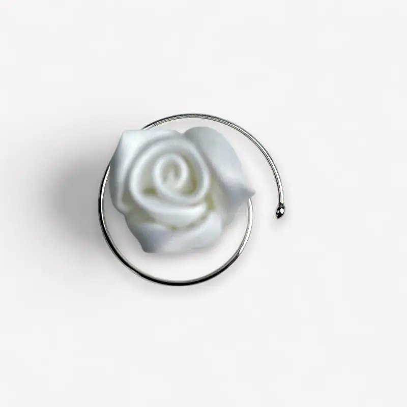 Een tijdloze klassieker voor elk bruids- of feestkapsel: deze witte curlie met satijnen roosje geeft een zachte, romantische uitstraling. De glans van de satijnen blaadjes en het subtiele formaat maken dit accessoire perfect om subtiele accenten in opgestoken haar of krullen aan te brengen. Elegant, eenvoudig en veelzijdig – voor een look die nooit uit de mode raakt.