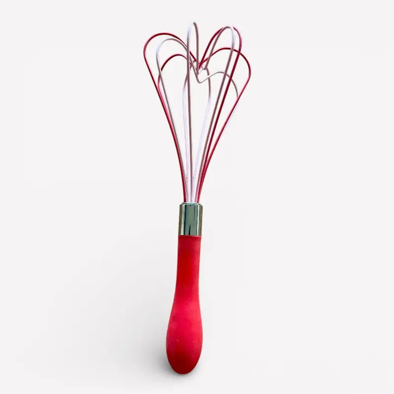 De rode handgreep ligt prettig in de hand en zorgt voor een vrolijk accent.