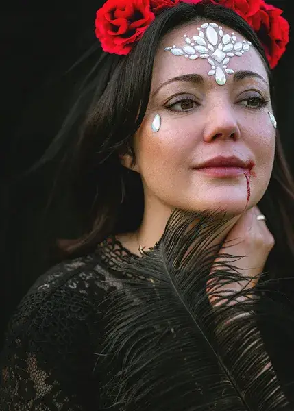 aanbrengt rond de ogen of op het gezicht. Overdag subtiel, maar zodra het donker