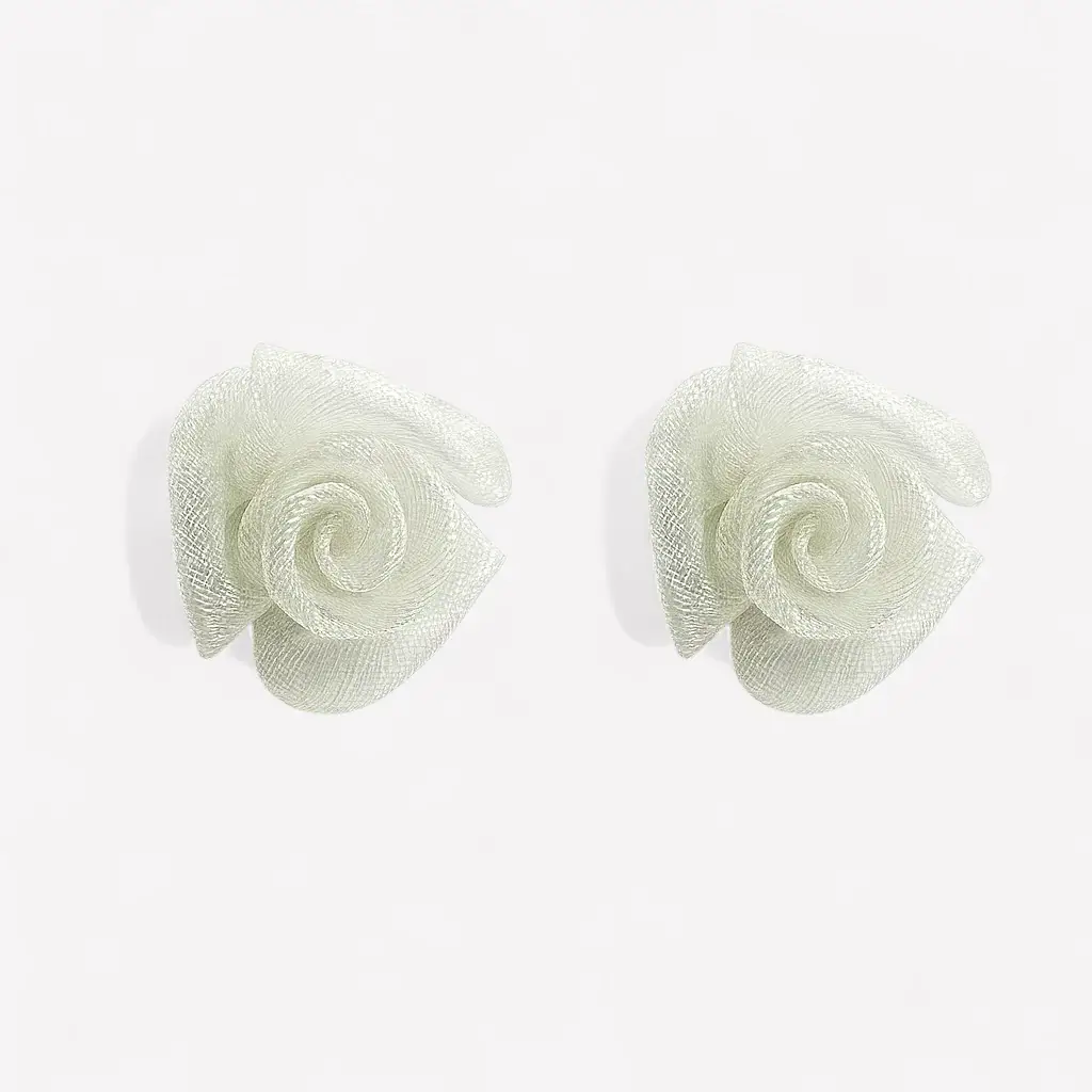 Oorbellen Tallinn – Organza bloem op zilverkleurig stekertje (1,5 cm)