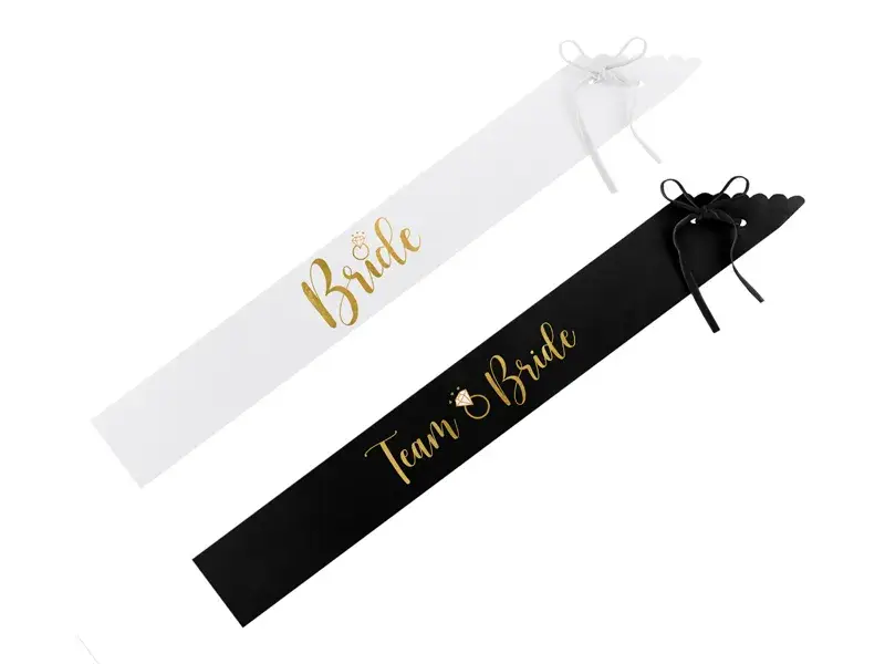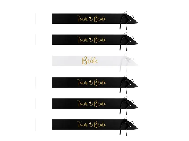 Papieren sjerpen Bride to Be & Team Bride – wit & zwart (set van 6 stuks)