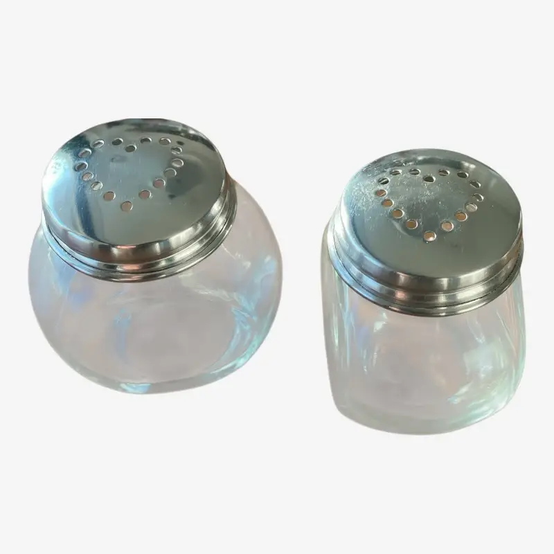 De set bestaat uit twee glazen potjes met een metalen strooideksel. In elk deksel is een hartje