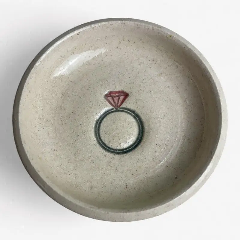 Met het handgeschilderde ringontwerp op de bodem is het een stijlvol alternatief voor een traditioneel ringkussen.