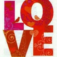 Bijzonderheid: LOVE-tekst met vogeltjes, hartjes en warme tinten