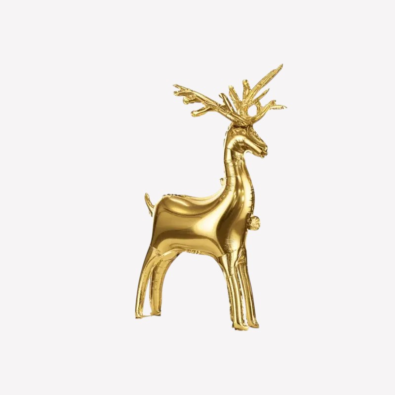 Voeg een vleugje wintermagie toe aan je decoratie met deze schattige staande folieballon in de vorm van een rendier. Met zijn glanzende gouden kleur en vriendelijke uitstraling is hij perfect voor kerstfeestjes, winterbruiloften of als vrolijk accent in de kinderkamer.