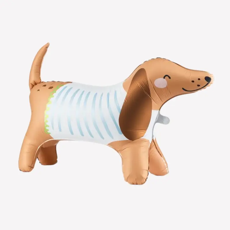 Deze staande teckel-folieballon is zo’n blikvanger waar iedereen meteen vrolijk van wordt. Door het staande ontwerp lijkt het net alsof er een klein feesthondje door de kamer wandelt — ideaal voor kinderfeestjes, hondenliefhebbers of elke viering die een speelse twist kan gebruiken.