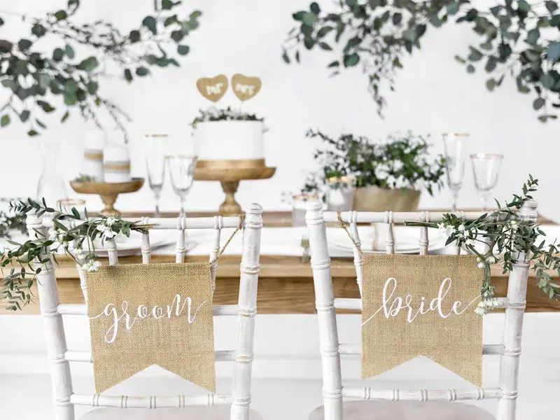 - Set van 2 stoelhangers: “Bride” & “Groom”