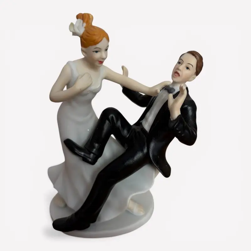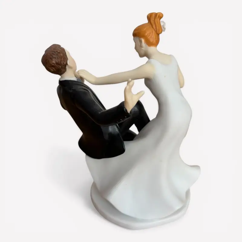 Taarttopper bruidspaar grappig – handbeschilderd porselein – 15 cm