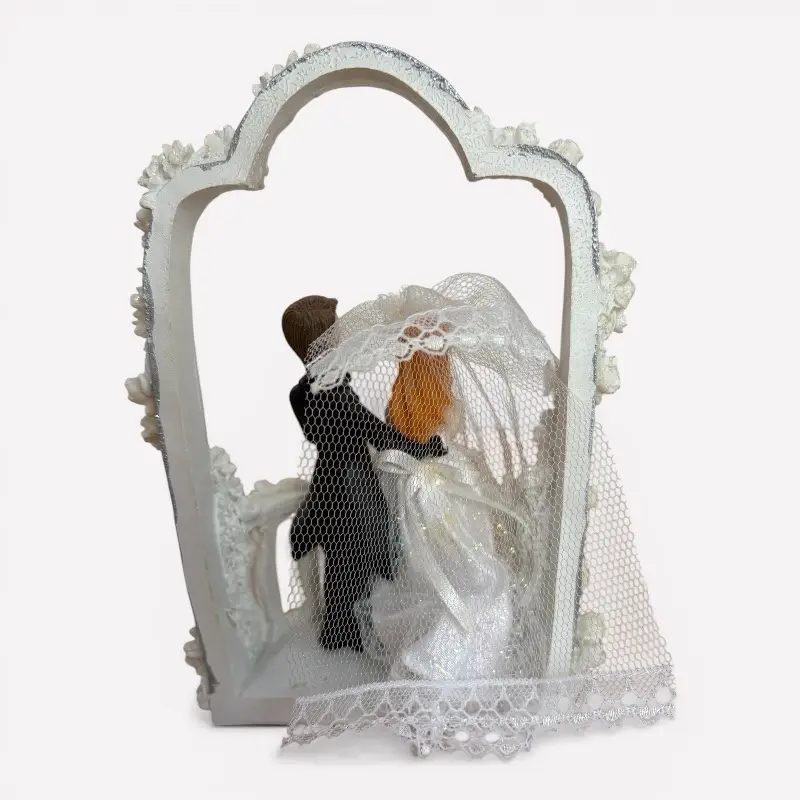 Taarttopper bruidspaar in frame met balkon – 17 cm