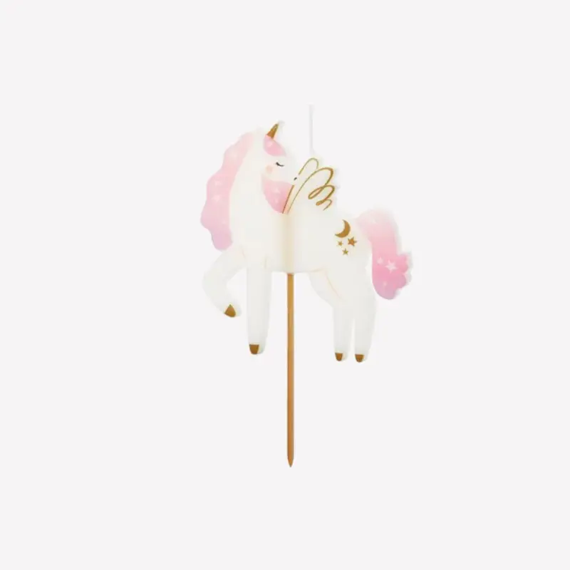 Deze lieve eenhoorn-verjaardagskaars brengt meteen een vleugje magie naar de feesttafel. Met haar zachte roze manen, gouden details en vriendelijke uitstraling is het precies zo’n kaarsje waar kinderen (en stiekem ook volwassenen) blij van worden.